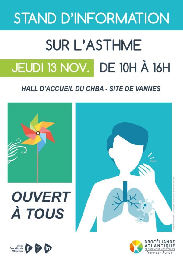 Affiche réalisée dans le cadre de mon alternance au Centre Hospitalier Bretagne Atlantique, pour la journée de sensibilisation et d’information pour l’asthme.